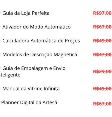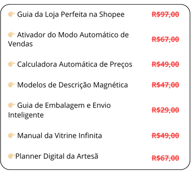 Mas agora você pode ter acesso ao Venda na Shopee para Artesãs junto com todos os bônus por apenas: