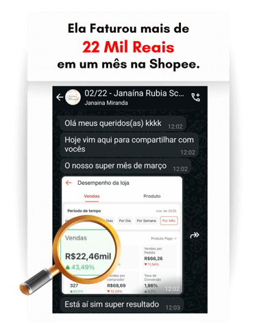 Você vai descobrir como ativar o modo automático de vendas e deixar a Shopee trabalhando por você, posicionando bem os seus produtos nas buscas para que eles apareçam para centenas de pessoas todos os dias.
