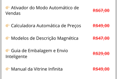 Você vai aprender, de forma simples e rápida, como montar sua loja do jeito certo, com as imagens e descrições que atraem mais compradores, mesmo que você nunca tenha vendido nada online.